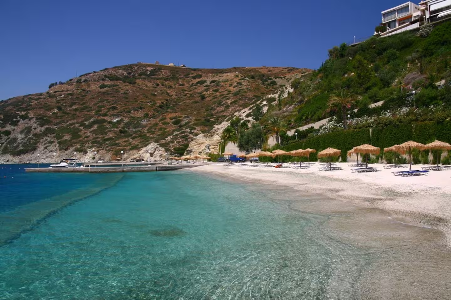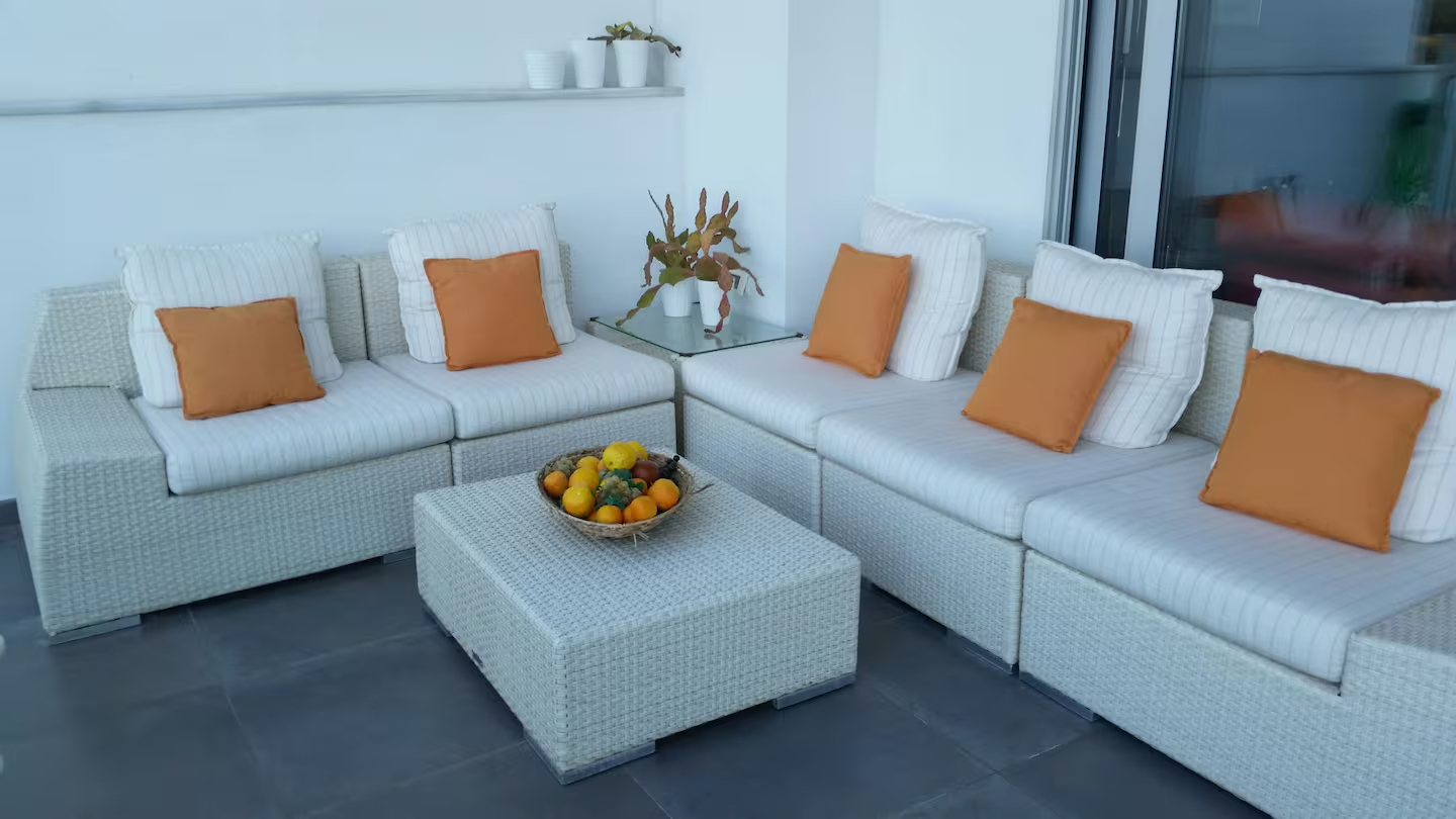The complex is quite large; the villa is approximately 15 minutes’ walk from the pool and 20 minutes from the beach. As the area includes uphill and downhill roads, renting a car is recommended for greater comfort during your stay.