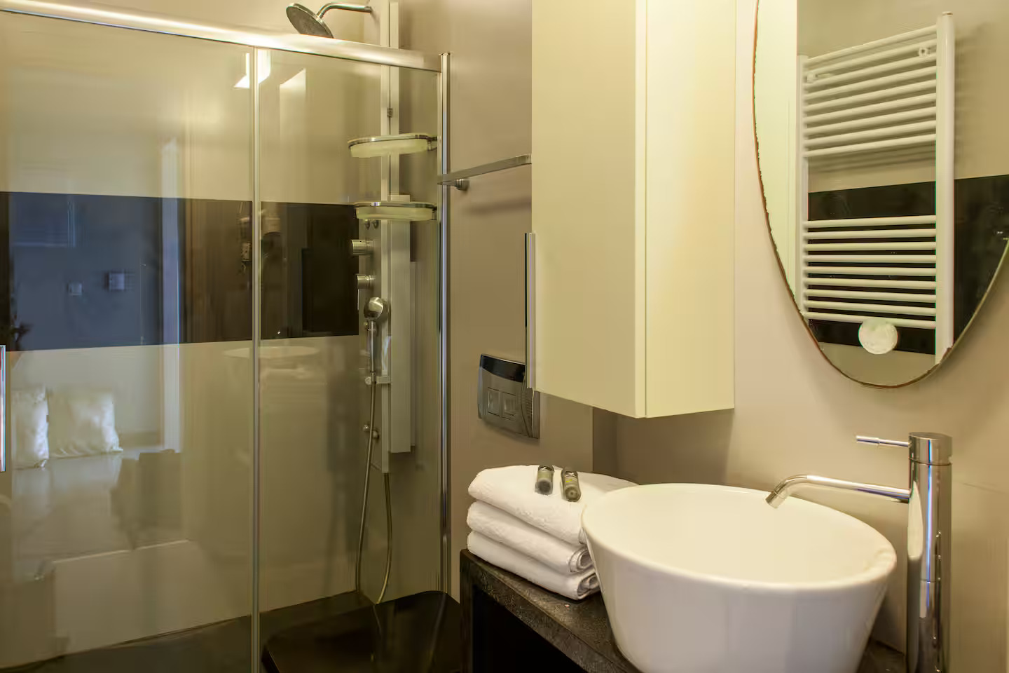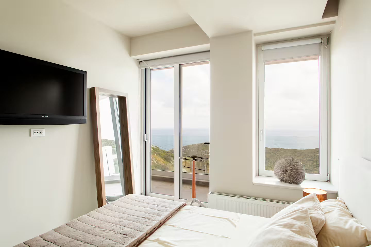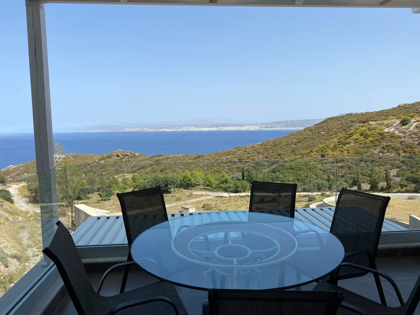 The villa is fully equipped, with private parking and comfortable, bright living spaces. The scenery is truly breathtaking, offering unobstructed views of the Cretan Sea, while in the evening the view is enhanced by the city lights, creating a unique atmosphere.