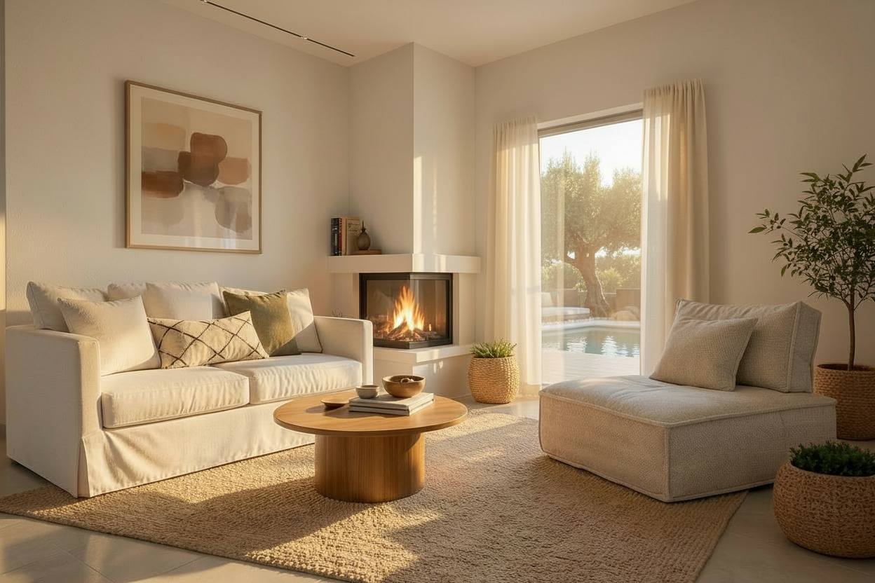 Comfortable Accommodation: Olia Executive Villas in Agrianá offers spacious villas with air-conditioning, terraces, balconies, private bathrooms, fully equipped kitchens, and private pools. Each villa includes a TV for guest entertainment.